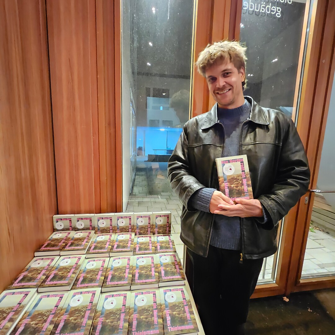 Der Titel «Von Norden rollt ein Donner» soll übrigens kein Gewitter beschreiben, sondern spielt auf das Panzermuseum in der Lüneburger Heide an. Widersprüche zwischen Ideal und Gewalt spielen in dem Buch eine große Rolle – hier kommt also mit dem Panzermuseum ein starker Gegensatz zu dem heimatlichen Naturdorf ins Spiel. Markus Thielemann verriet auch, dass er sein Werk anfangs «Der Heideknabe» nennen wollte – jetzt ist er allerdings sehr froh über den Titel, den sich seine Lektorin ausgedacht hat.